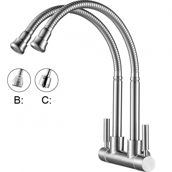 Trên thành bếp có gắn bộ cấp nước inox cao cấp được điều khiển bằng tay cấp trực tiếp.