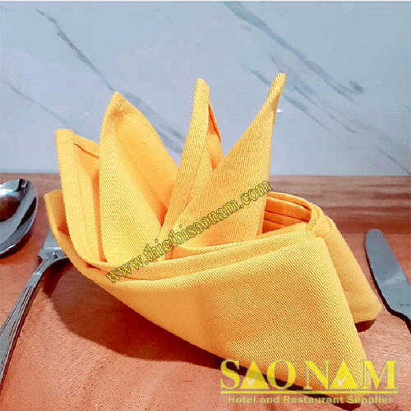 Khăn ăn kaki cotton chuyên dùng trong các bàn tiệc của nhà hàng, dễ xếp tạo hình trang trí trên bàn tiệc